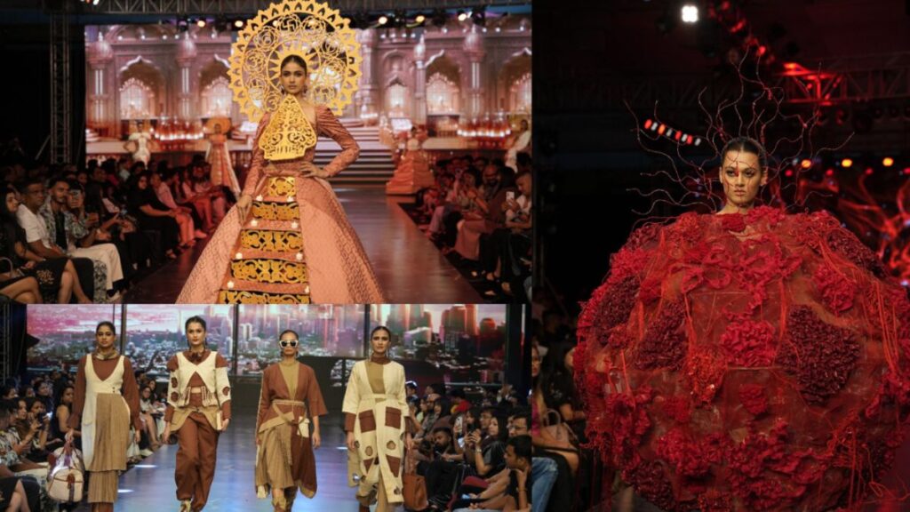 Emphasizing social awareness among women, vitiligo, and highlighting architectural structures such as the Golden Temple, Victoria Memorial, and Milan Cathedral, the students centered their attention on appealing concepts. Surat’s textile industry used innovations, displaying various scenarios for different occasions, showcasing the participation of designers, making their presentations in themed megapresentations, displaying theatrical period costumes, futuristic cosplay, and avant-garde collections.