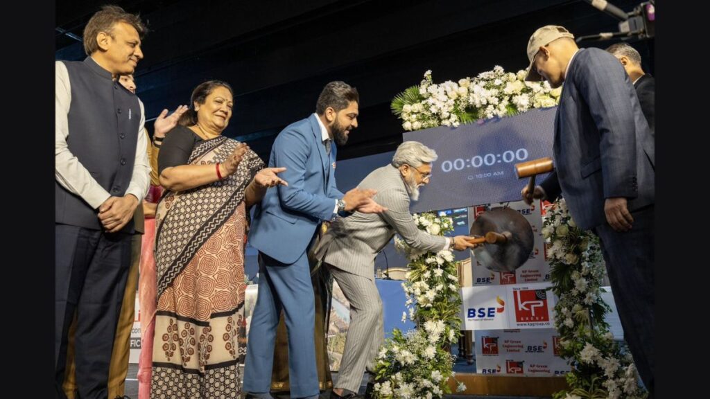 KP Group CMD and Promoter Dr Faruk G Patel rang the bell to mark the listing of KP Green Engineering’s shares on BSE.